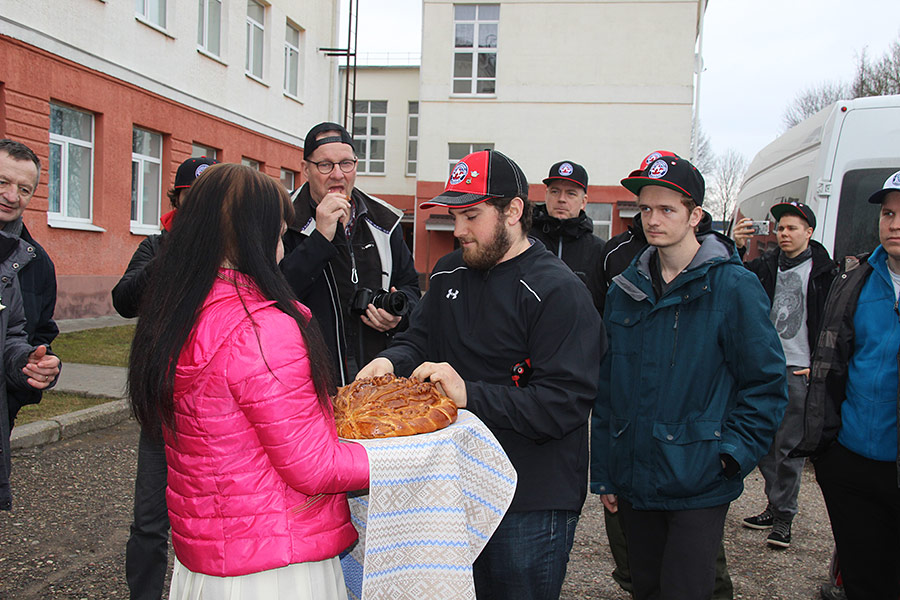 В один из мартовских выходных в Ошмяны пожаловали игроки любительских хоккейных команд из Канады и Финляндии. Встреча состоялась в рамках реализуемого в школе-интернате проекта «Сопричастность». Своих гостей, посетивших Беларусь в первый раз, ребята встретили по доброй славянской традиции хлебом-солью, а затем организовали для них экскурсию. Директор Владимир Александрович Бизюк показал хоккеистам деревообрабатывающее производство и парикмахерскую, рассказал о проекте «Школа-фабрика», который много лет успешно реализуется в интернате, принося положительные результаты. В магазине, где весь товар сделан руками учащихся и их учителей, гости сделали приятные покупки.