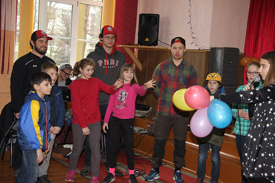 В актовом зале интерната дети задавали хоккеистам свои вопросы, интересовались не только самым популярным в Канаде и Финляндии видом спорта, но и культурой стран, которые они представляли. А затем гости предложили принять участие в увлекательных творческих конкурсах. На память об интересной встрече хоккеисты подарили воспитанникам интерната сувениры и пригласили на родину хоккея – скрестить клюшки в товарищеском матче.