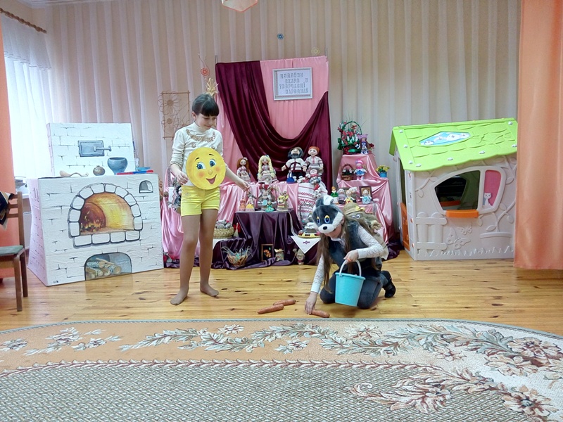 Ученики детской школы искусств порадовали малышей ярким и красочным выступлением, а также игрой на музыкальных инструментах. Сценарий постановки разработала Светлана Владимировна Шидловская. Учителя и воспитанники класса изобразительного искусства продумали до мелочей декорации, а также костюмы для сказочных персонажей. Юные артисты ответственно отнеслись к репетициям, старательно учили роли. Для них новая форма творческой деятельности пришлась по душе, поэтому и результат получился неожиданно ярким, впечатляющим и красивым. Малыши, воспитатели, родители тепло принимали юных односельчан и награждали артистов бурными аплодисментами.