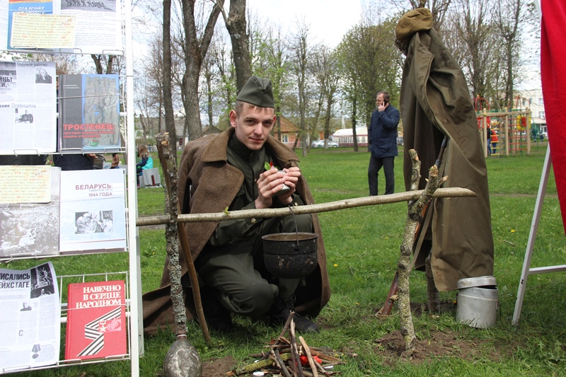 Спортивные соревнования, праздничная торговля, работа детских игровых площадок и мастер-классы, выставка – продажа народных изделий народных мастеров развернулись в городском парке на целый день, несмотря на прохладную погоду. Финальным аккордом праздника станет концерт народного театра песни и танца «Импульс». Ошмянцы вместе со всей страной споют «День Победы» вместе!