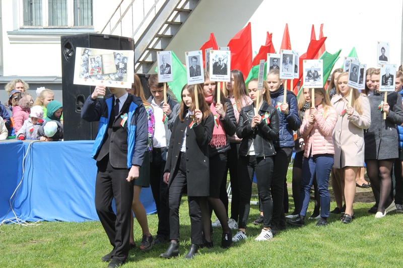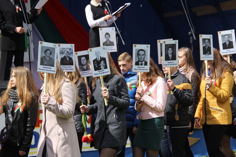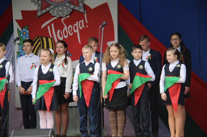 Музыкально-хореографические композиции «Чистая как слеза», «Живая память», «Счастливое детство», театрализованные представления и поздравления, подготовленные учениками школ города – подарок и благодарность ветеранам и всем гостям за возможность жить под мирным небом, за счастливое детство, за благополучие и стабильность в нашем обществе. Героизм дедов вдохновляет нынешнее поколение ошмянцев на созидательный труд, отличную учебу, успехи в спорте и общественной жизни. Поэтому на празднике Великой Победы, в торжественной обстановке традиционно вручаются членские билеты ОО БРСМ, повязываются галстуки пионерам, прикрепляются октябрятские значки младшим школьникам. И этот год не стал исключением: для десяти лучших ребят района этот день станет памятным.