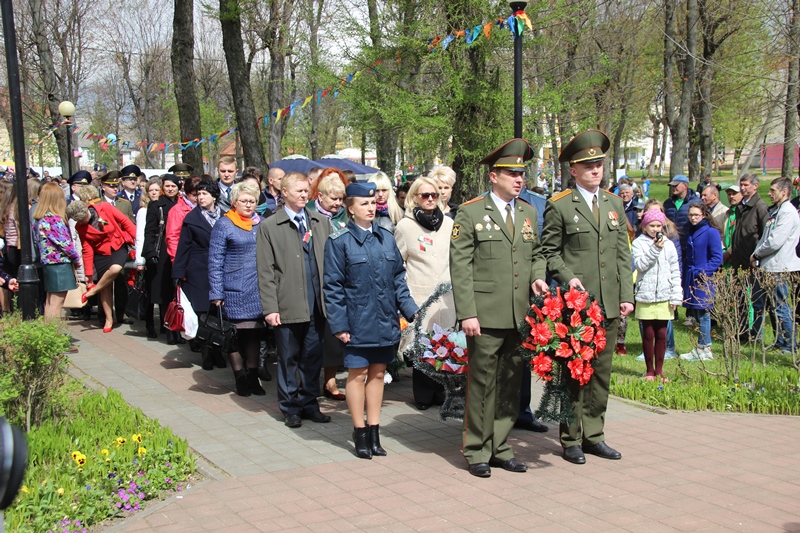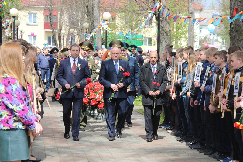 День Победы-особое торжество, в нем переплетаются гордость за поколение, отстоявшее мирное небо над головой, и желание отдать дань памяти жертвам войны. Поэтому к этой дате тщательно готовились заранее и представители трудовых коллективов, и молодежной, профсоюзной организаций. Акции «Бессмертный полк», «И в памяти навеки имена…» до глубины души трогают каждого. По-другому и быть не может, ибо мы знаем: именно этим людям мы обязаны главной ценностью – миром. Молодое поколение, родственники несут в руках фотографии героев войны, победителей тех страшных сражений, о которых мы знаем не понаслышке. Ложатся цветы к подножью могилы погибших воинов в городском парке, салют и вечная память и благодарность воинам-героям за Победу. Руководство района и представители трудовых коллективов выстроились в живом корридоре для возложения корзин цветов.