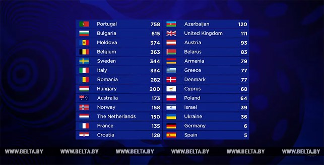 Лавры победителя и хрустальный микрофон «Евровидения» португальцу Сальвадору Собралу принесла песня «Amar Pelos Dois». По результатам голосования он набрал 758 баллов.