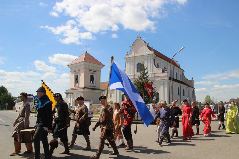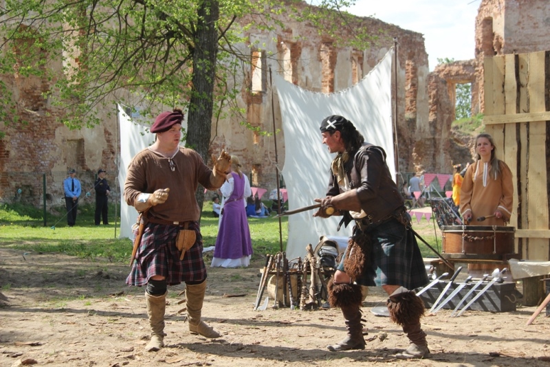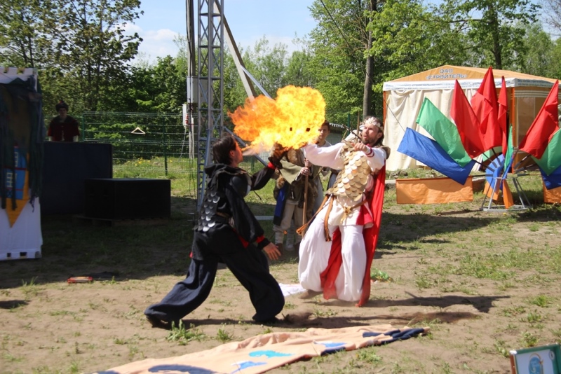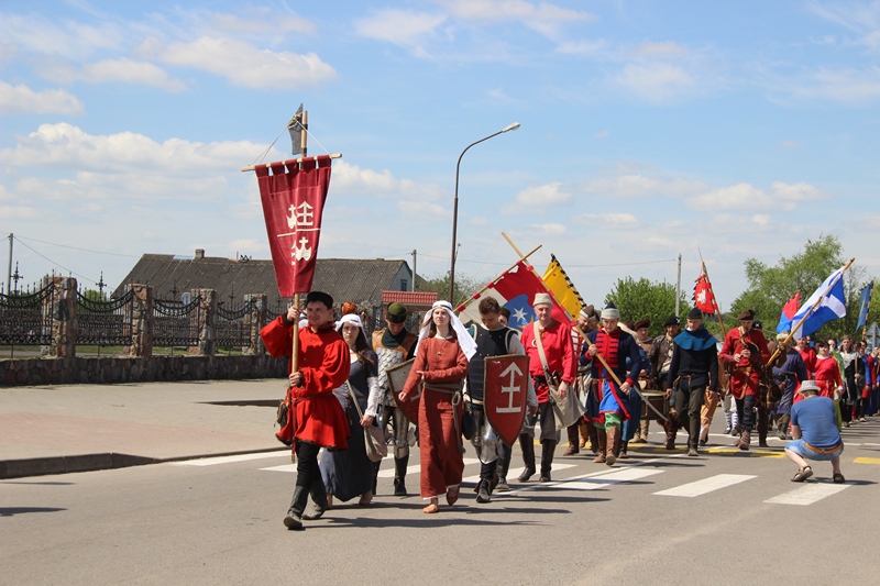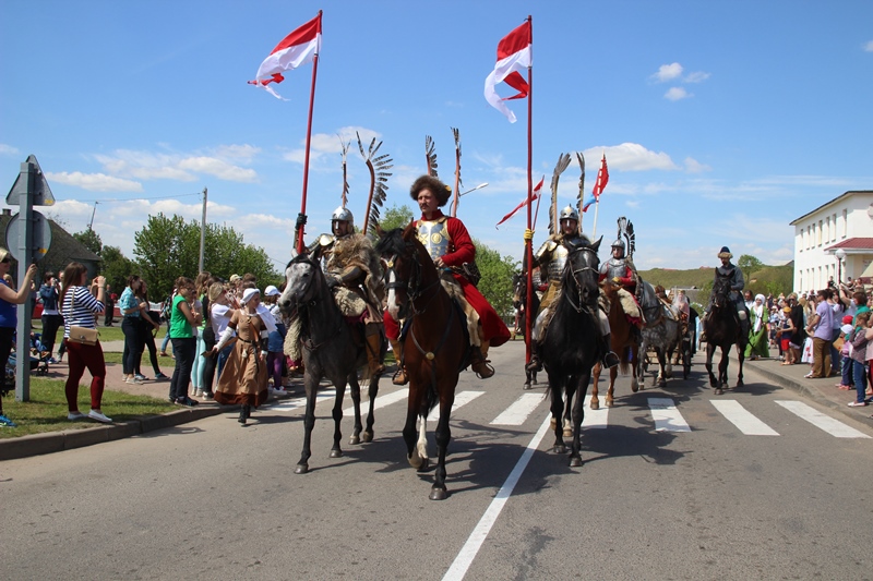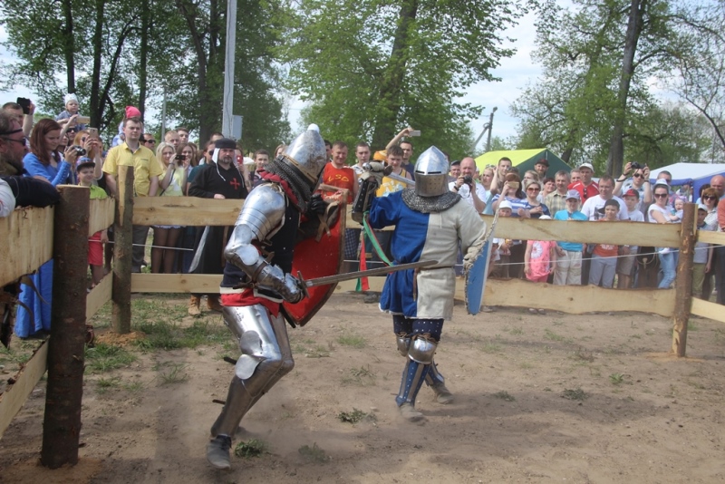 Праздничная программа была наполнена необычными и интересными представлениями уличного театра «Вир». Гости не только увидели спектакль, но и приняли участие в мастер-классе по хождению на ходулях. А конноспортивный клуб «Золотая шпора» из Минска – постоянный участник нашего фестиваля, их выступления полюбились зрителям разного возраста. В текущем году они приехали на праздник с театрализованным шоу «Крылатыя ваяры Вялікага княства Літоўскага». Конный турнир, битва лучников, рыцарские игры и соревнования – на протяжении всего праздника можно было понаблюдать и даже поучаствовать, почувствовав себя смелым рыцарем. Рыцарские клубы из Минска, Гродно, Новогрудка и других городов Беларуси на своем “Рыцарском стане” демонстрировали военно-исторические предсталения и поединки белорусской шляхты.