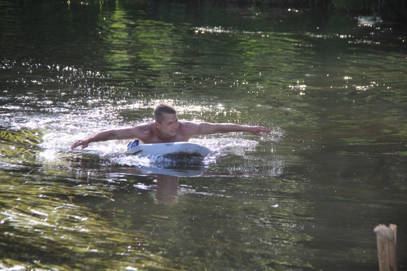 После торжественного открытия командам предстояло сразиться в ряде туристических конкурсов. Среди испытаний первого дня – подвижная игра «Города», соревнования по волейболу, полоса препятствий и совершенно новый конкурс — заплыв «На чем попало». Надо отметить, что команды основательно к нему подготовились, а потому получили массу положительных эмоций.