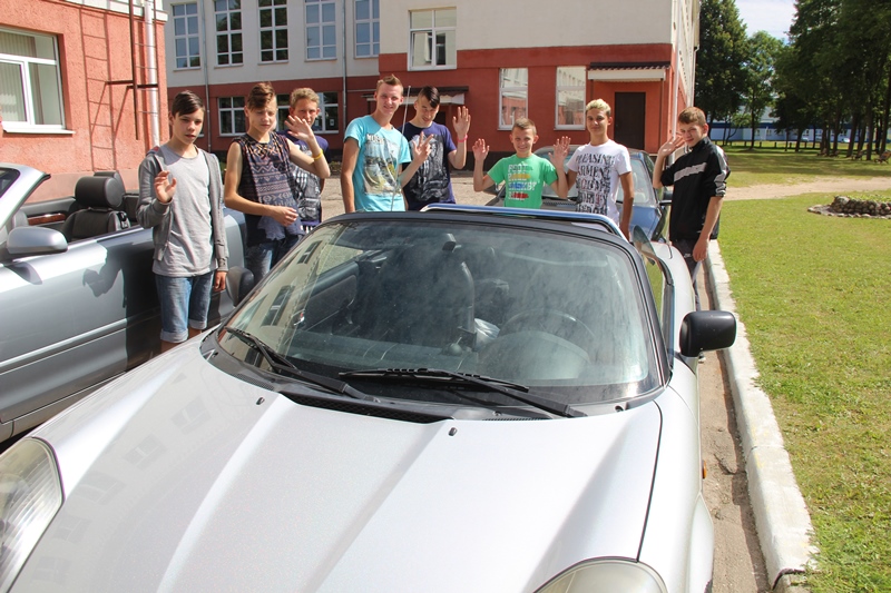 И хотя это их первый визит в Ошмянскую школу-интернат, с детьми молодые люди сразу же нашли общий язык. Оказалось, у них много общих тем, увлечений и интересов. И все же главное, что сблизило участников встречи, — это автомобили. Ребята смогли не только рассмотреть кабриолеты, посидеть в них, но и промчаться с ветерком в прямом смысле этого слова. Конечно, пока только в качестве пассажиров и только после соответствующего инструктажа по технике безопасности. Тем не менее, эмоции зашкаливали. Мальчишки то и дело подходили к своим новым друзьям, чтобы повторить небольшой дрифт по городу и по территории школы-интерната: менялись местами и машинами, чтобы выбрать самую «классную». А выбирать и вправду было из чего: Skoda, BMW, Audi, Peugeot… Скоростные, маневренные автомобили пришлись по душе воспитанникам школы-интерната. Для фотосессии ребята определили несколько наиболее понравившихся кабриолетов, от которых многие ни на шаг не отходили.