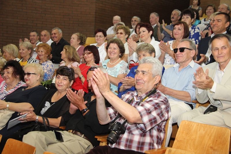 Эмоции и чувства захлестывали, воспоминания лились рекой. Оказалось, что к юбилярам присоединились и те, кто окончил первую школу годом раньше и годом позже, но сохранил теплые дружеские связи с товарищами по школе. Около 50 человек отбросили в тот субботний день свои дела и хлопоты и поспешили на встречу со школьной юностью. Из Минска приехали Станислав Алексюк, Тамара Василевская, Лариса Бек, Регина Исайчук, Валерий Колос, Вера Лавришкова, Юрий Мезенин, Нонна Рупакова и Алла Власенко. Большое расстояние преодолели, чтобы встретиться с одноклассниками и друзьями, Татьяна Кирдик из Италии, Ефим Каплан, Юрий Миллер, Слава Усачев из Израиля, Игорь Чудаков из Германии. Из Литвы приехала Тамара Якубовская, из Латвии – Галина Жарикова. Валентина Баранник вернулась в город детства через 50 лет, хотя и живет недалеко – в Зельве. По соседству живут Валентина Лазовская (Сморгонь) и Мустафа Радкевич (Ивье). Почти в полном составе собрались в школе выпускники, которые живут, а некоторые, несмотря на возраст, еще и работают, в Ошмянах. Трогательная встреча продолжилась в школьном музее, где провела для гостей экскурсию Ромуальда Иосифовна Ануфриева. Пройдя коридорами первой, но все же неродной школы, всем не терпелось отправиться к старой и уже обветшалой, но от этого не менее симпатичной обители, которая скрывается в тени высоких деревьев в переулке Мицкевича. Но перед этим все направляются в актовый зал, где выпускников встречает директор Михаил Марьянович Гружевский. С концертной программой перед гостями выступают нынешние ученики школы. Не остаются в долгу и гости. Иван Малашкевич демонстрирует прекрасные вокальные данные, а Николай Догель с чувством читает басню Кондрата Крапивы. Бесценным подарком школе, родному городу и каждому ученику, в чьей судьбе живет первая школа, стала песня про Ошмяны, написанная Игорем Чудаковым и Иваном Малашкевичем в исполнении профессиональной певицы Анастасии Солдатенковой. К песне был подготовлен видеоряд из фотографий и видеокадров разных лет. В память о встрече Регина Исайчук от выпуска 1967 года подарила школьному музею книгу «Спадчына Беларусі» с автографами выпускников. Минутой молчания почтили одноклассники ушедших товарищей (их, к сожалению, уже 31), учителей и родителей.