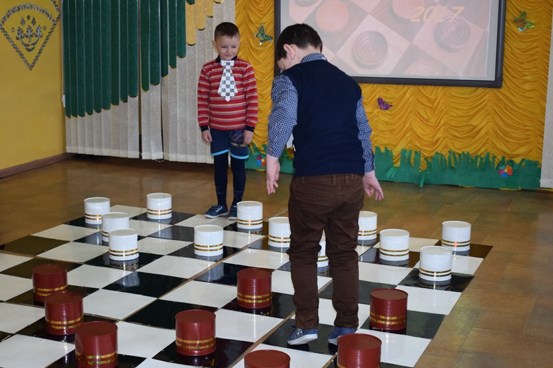 О правилах игры в шашки участникам и гостям праздника напомнили Шашечки белого и черного цвета. Эти забавные персонажи помогли и в проведении жеребьевки.