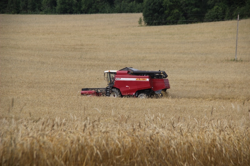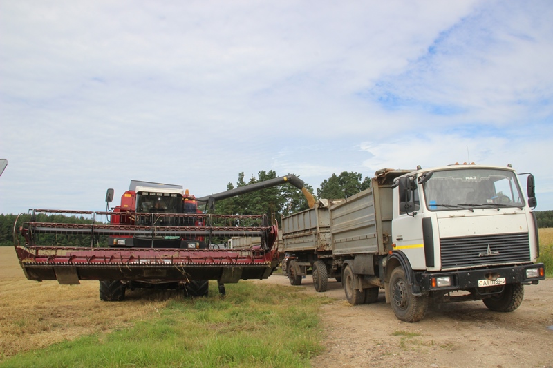 Золотым потоком сыплется зерно в кузов МАЗа опытного водителя хозяйства Михаила Сергея. С начала уборочной кампании он перевез уже 141 тонну зерна. Как деловито замечают механизаторы, начали жатву сначала на тех полях, где влажность не более 17-18 процентов, где редкие растения и мельче зерно. Это делается для того, чтобы исключить потери, не передержать зерно и получить требуемую урожайность. Пока озимая пшеница дает урожайность 40,6 центнера с гектара, намолочено 73 тонны, озимый ячмень – 43,8 центнера с гектара, намолочено 744 тонны. А в целом в КСУП «Краковка» на 3 августа обмолочено 185 гектаров площадей, занятых озимыми культурами, намолочено 803 тонны зерна, практически сразу убирается солома и освобождаются поля для подготовки почвы на новый урожай.