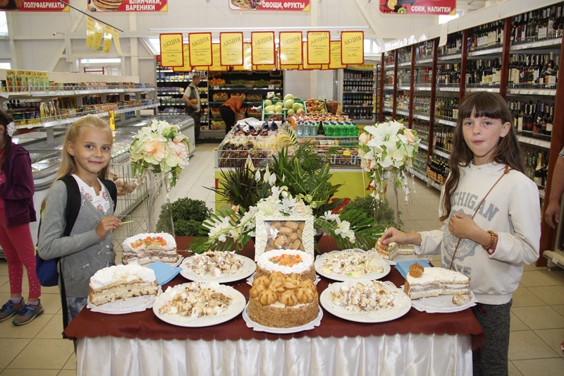 В микрорайоне Западный День знаний начался по-настоящему вкусно – в универсаме «Родны кут» состоялась дегустация тортов, изготовленных кондитерским цехом отдела общественного питания Ошмянского филиала Гродненского облпо.