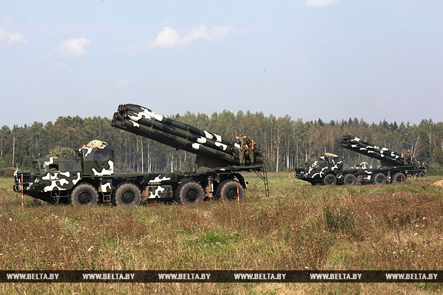 А вот и легендарные дальнобойные реактивные системы залпового огня (РСЗО) «Смерч». Четыре комплекса выстроились на огромной поляне, готовые к боевым действиям и ведению огня. По команде командира войсковой части 12180 336-й реактивной артиллерийской бригады полковника Александра Тишкевича они синхронно подымают в небо реактивные снаряды как надежный щит от любого вторжения. «На сегодня вместе с ракетным комплексом «Полонез» это наиболее мощная боевая техника, которой располагает белорусская армия, — рассказывает с гордостью Александр Владимирович. — Мы не раз принимали участие в различных тактических учениях, в том числе за пределами Беларуси, с боевыми пусками и пока безупречно выполняем все поставленные задачи».