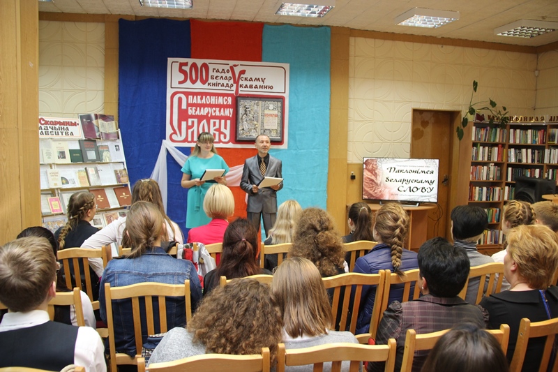 Значнай для нашай краіны даце – 500-годдзю беларускага кнігадрукавання прысвяцілі мерапрыемства супрацоўнікі раённай бібліятэкі. На літаратурна-тэатралізаванае свята “Слову беларускаму паклонімся” былі запрошаны вучні гімназіі горада і бібліятэкары раёна. Пачалася дзея тэатралізаваным пралогам, у якім Кнігі, сучасная і старажытная (Валянціна Ліштван і Аліна Кеда), распачалі спрэчку з Францыскам Скарынам (Яўгенам Астрамовічам) аб сваёй ролі ў жыцці чалавецтва. Аб жыццёвым шляху асветніка і гуманіста, яго творчых здабытках распавялі ўдзельнікам мерапрыемства Сяргей Жылік і Вольга Тарашкевіч.