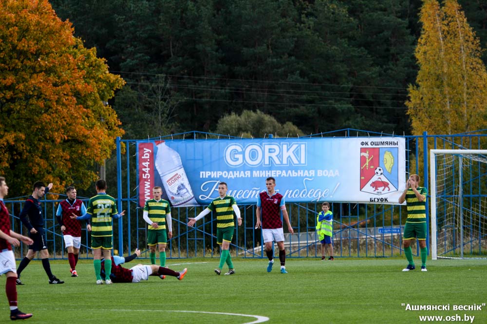 7 октября в Ошмянах прошел матч 23 тура чемпионата Республики Беларусь по футболу среди команд второй лиги. На стадионе физкультурно-оздоровительного комплекса встречались ФК «Ошмяны-БГУФК» и ФК «Спутник» (Речица).