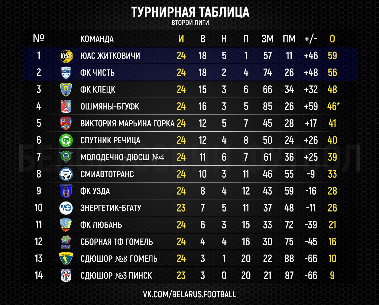 14 октября в Гомеле прошел матч 24 тура чемпионата Республики Беларусь по футболу среди команд второй лиги.