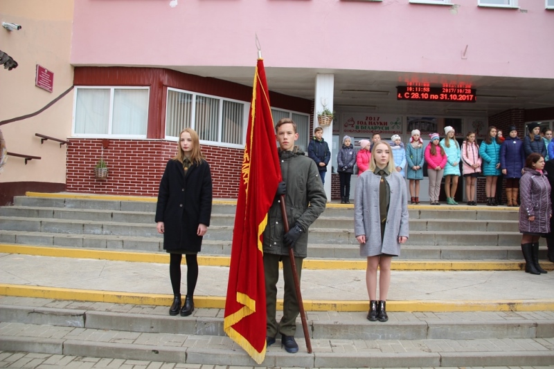 Сегодня, в канун 100-летия Октябрьской революции, в средней школе №1 г. Ошмяны прошла торжественная линейка-митинг, посвященная переносу памятного знака на территорию школы.
