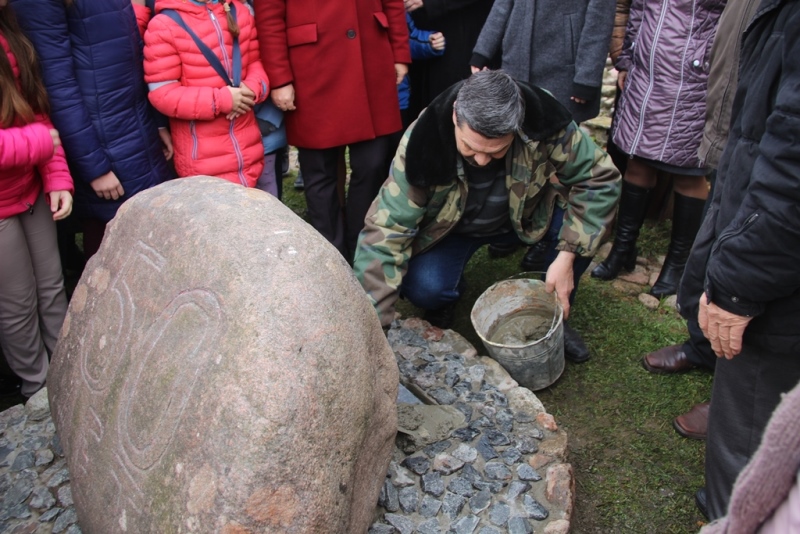 Поздравить собравшихся со знаковым событием пришли также методист районного учебно-методического кабинета Тереса Кошань, а также выпускник школы 1967 года Александр Звонов. Александр Федорович рассказал, как 50 лет назад готовились к юбилейному митингу, как выбивали на камне памятную цифру, поделился воспоминаниями о своих школьных годах.