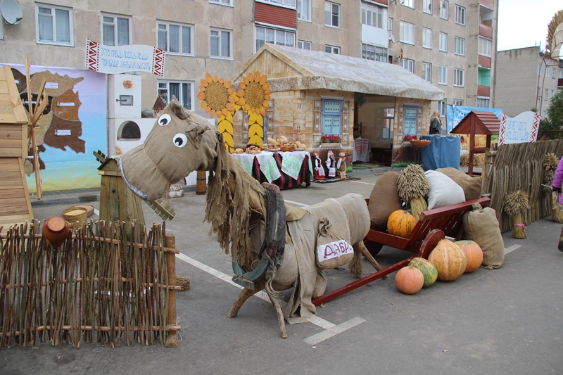 В одну большую праздничную площадку превратились центральные улицы города. Хлебом-солью, песнями и праздничным настроением встречают гостей подворья районов. Рыцари – на Лидском подворье, веселый мишка с баранками – на Сморгонском. Украшают подворья краснобокие яблоки, тыквы, овощи – часть богатого урожая, который вырастили в нынешнем году аграрии Принеманья. Кореличчина «хвасталась» своим богатством льна. Дятловчане презентовали районный сельскохозяйственный проект «Дбайных людзей славім – весела час бавім». Ярким акцентом подворий стали оригинальные фигуры из природных материалов. На Ивьевское помидорное подворье гостей зазывал сам Помидор, приглашая окунуться в атмосферу праздника. Самым многонациональным можно назвать подворье Зельвенщины: здесь разместился цыганский табор, а площадку украсили фигуры лошадей как символ знаменитой Анненской ярмарки.