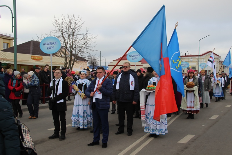Хлебам-соллю віталі нашы землякі ўдзельнікаў урачыстасці. Усе раёны прынялі ўдзел у конкурсе на лепшы каравай з мукі новага ўраджаю. Гасцінна запрашалі ганаровых гасцей і мясцовых жыхароў стылізаваныя падворкі, якія прадставілі ўсе раёны Гродзеншчыны. На ашмянскім падворку віталі гасцей удзельнікі народнага ансамбля народнай песні “Жытніца” Кракоўскага Дома культуры, а таксама работнікі клубных устаноў раёна. Свае таленты прадэманстравалі і ашмянскія народныя ўмельцы.