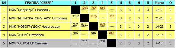 ТУРНИРНАЯ ТАБЛИЦА ПОСЛЕ 4 ТУРА. ГРУППА «СЕВЕР».
