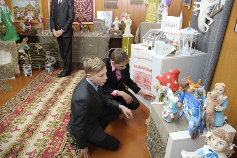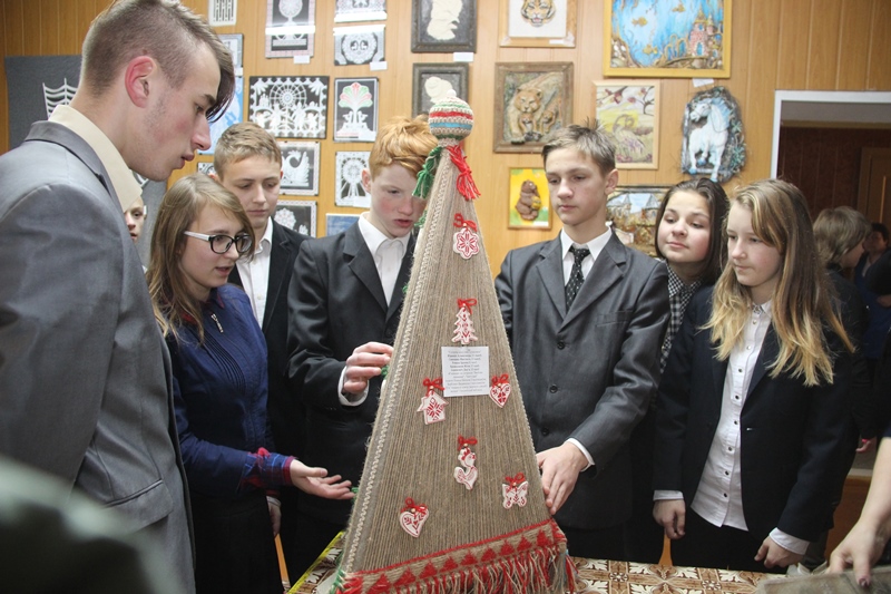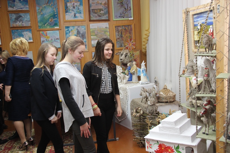 На выставку работ декоративно-прикладного творчества «Калядная зорка» в центр творчества детей и молодежи пришли не только дети, но и взрослые. Свое творчество продемонстрировали ребята, занимающиеся в кружках декоративно-прикладного характера в школах района. Экскурсию для воспитанников школы-интерната, учащихся городских школ провела заведующий отделом декоративно-прикладного творчества центра Наталья Войтеховская.