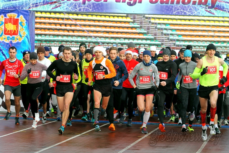 Традиционный Новогодний пробег завершил легкоатлетический сезон в Гродно. Старт с участием Дедов Морозов и Снегурочек разных возрастов прошел в девятый раз и снова стал не только спортивным, но и веселым, зрелищным мероприятием.
