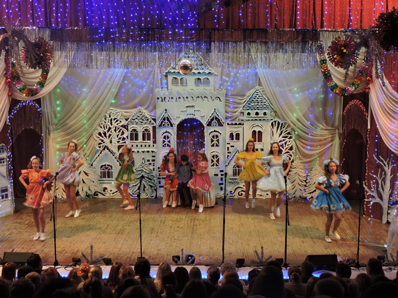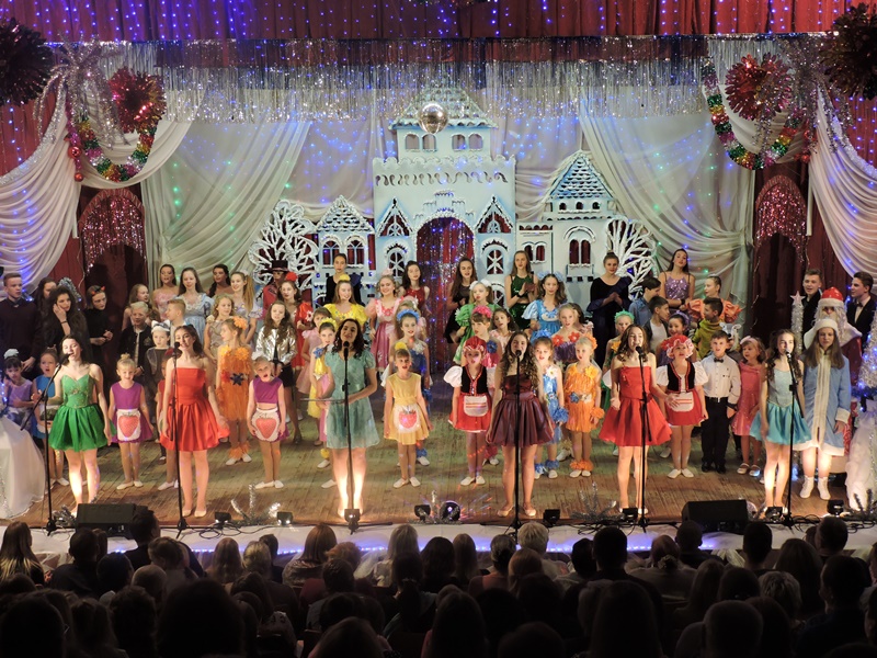 В первый день Рождества Христова, когда душа поет и испытывает потребность дарить доброту и хорошее настроение окружающим, прекрасный подарок жителям города сделал творческий коллектив СШ №1. Здесь прошла традиционная шоу-программа “Рождественские встречи”. Зажигательные хореографические композиции, веселые новогодние песни, искрометные шутки звучали со сказочной и нарядной сцены школы. На протяжении двух часов дарили свое творчество зрителям малыши, которые начинают “артистическую карьеру” на школьной сцене в составе “Дружных утят” и “Красных Шапочек”, ученики средних и старших классов и даже выпускники, которые не прочь вспомнить “минуту славы” в родных стенах и снова испытать трогательные чувства от общения со зрителями. В этом году в концертной программе принял участие Артур Илькевич, без участия которого не проходил ни один новогодний концерт в школе. Уверенно чувствовал себя на сцене Артем Скороль. Неиссякаемая энергетика юного артиста тут же передавалась залу. Запомнились зрителям выступление квартета с песней “Крутые пацаны”, Юлия Нечай, Валерия Трайковская, Валерия Терешко, Полина Мутянская, Ксения Крышалович, Олег Колядко и Дарья Шиманская, Ульяна Лугин, Юлия Рыбицкая, хореографические композиции образцового театра танца “Эффект”… Каждый выход на сцену юных талантов был ярок и неповторим. Праздничную программу дополнили Дед Мороз со Снегурочкой и неугомонный Черт со своей подругой, а также ведущие Диана Пелецкая и Никита Буклис.