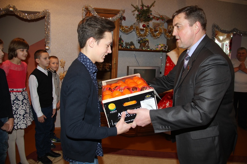 Гости вручили мальчишкам и девчонкам сладкие подарки и фрукты, а родителям -бытовую технику и сертификаты на приобретение кухонной мебели. Председатель райсполкома Мирослав Саросек узнал, как живут семьи, выслушал проблемы, которые существуют в домах семейного типа и пообещал незамедлительно их решить. Глава района также отметил важность той работы, которую выполняют родители, ведь не у каждого человека хватит душевной доброты и хорошего отношения к детям.