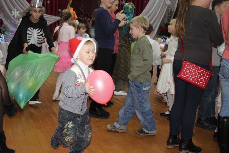 Зацікаўленыя навагоднім цудам дзеткі, апранутыя ў карнавальныя касцюмы спявалі, танцавалі, вадзілі карагоды каля пышнай елкі. Як не стараліся Баба Яга і Кашчэй сапсаваць навогодні настрой, у іх нічога не атрымалася! Напрыканцы свята яны разам з дзецьмі і дарослымі гасцямі закружыліся ў святочным карагодзе, а пасля прапанавалі паўдзельнічаць у разнастаўных конкурсах, пачытаць вершы і пажадаць адзін аднаму ўсяго добрага.