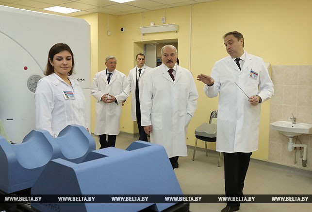 Президент ознакомился с организацией систем жизнеобеспечения в отделении ядерной медицины, современными методами диагностики и лечения пациентов с онкологической патологией, условиями их пребывания в диспансере.