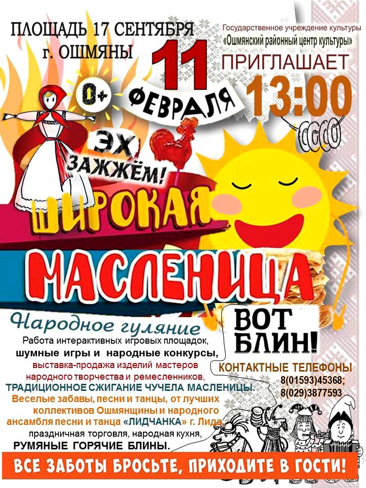 Игры, песни и блины. В Ошмянах пройдет праздничное гуляние «Масленица»