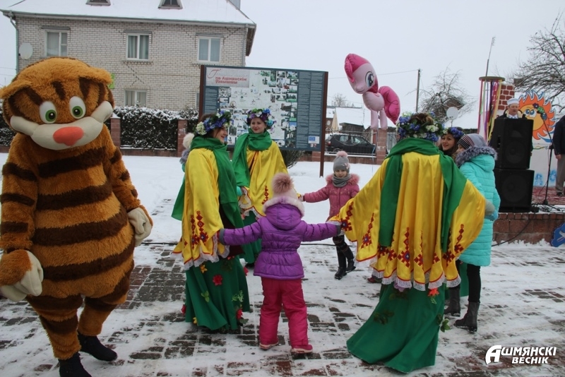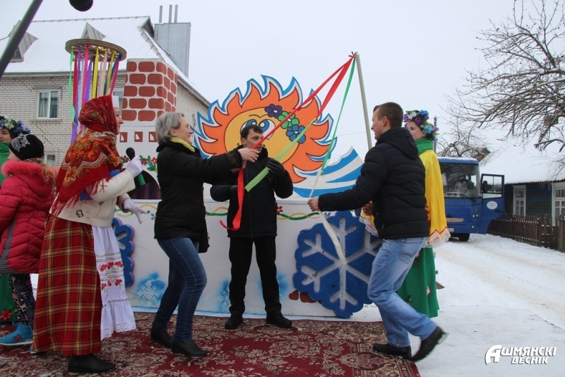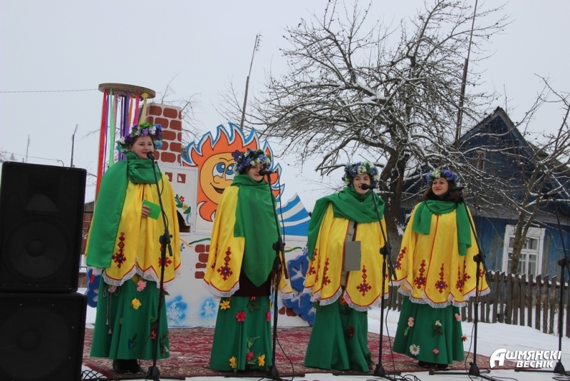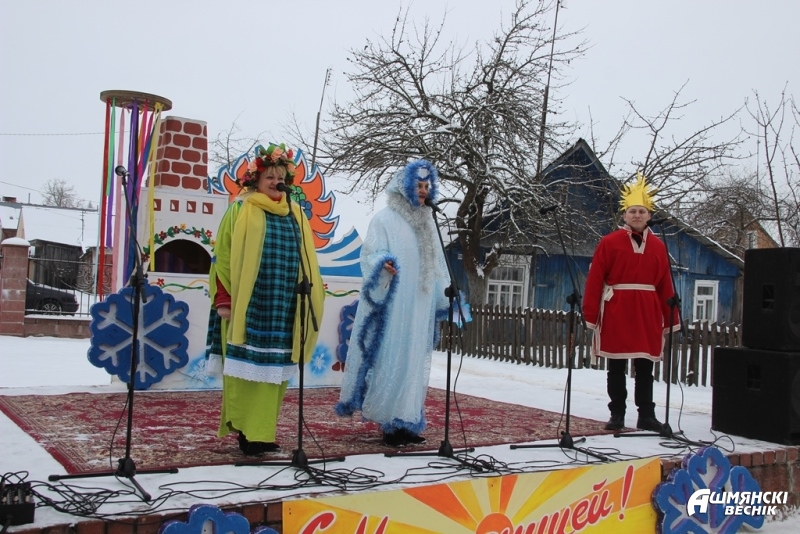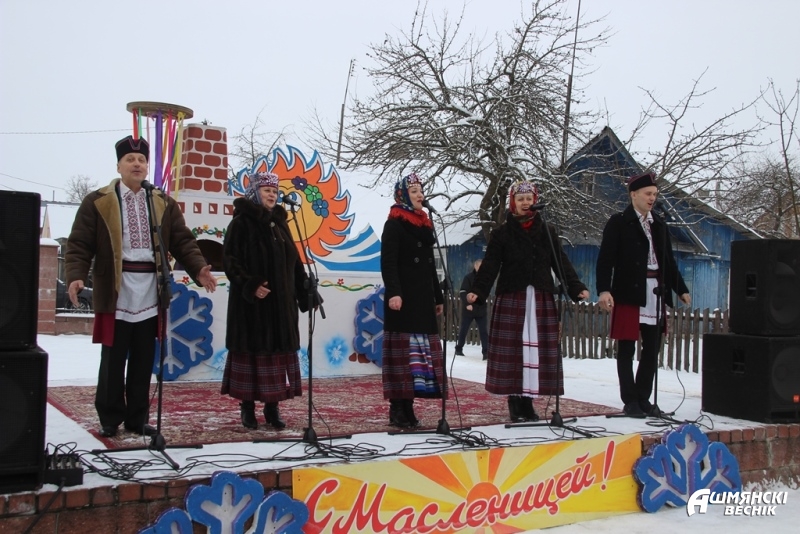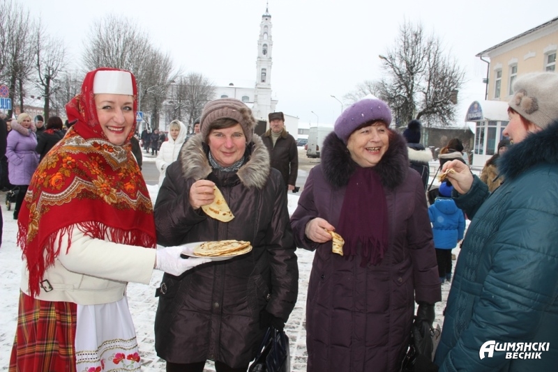 Но не забыли организаторы мероприятия — сотрудники Ошмянского районного центра культуры – и о пище духовной. На декорированной сцене у краеведческого музея развернулось задорное Масленичное представление. В действии приняли участие Ярила (бог солнца и возрождения), Дара (богиня природы, молодости и весны), Метелица и, конечно же, сама Масленица. Не обошлось в этот день и без музыкальных номеров. На сцене выступили мужская вокальная группа народного ансамбля песни и танца «Крыніцы», народный ансамбль цыганской песни «Джана Рома», вокальная группа «Рамонак» Гольшанского отдела культуры и досуга, народный семейный ансамбль «Граўжанцы», а также гости праздника – народный ансамбль песни и танца «Лідчанка». У самой же сцены дети и взрослые водили хороводы и фотографировались с ростовыми куклами.