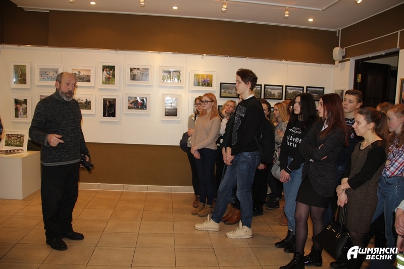 На ўрачыстым яе адкрыцці ў краязнаўчым музеі сабралася шмат мясцовых прыхільнікаў фатаграфіі і краязнаўства. Цікавай гэта сустрэча была і для другакурснікаў аграрна-эканамічнага каледжа. Гутарка з аўтарам выставы была перасыпана тонкім гумарам. Уладзімір Сцяпанавіч расказваў аб сабе, аб сваіх героях, аб сакрэтах, якія дазваляюць зрабіць жывыя эмацыянальныя здымкі, адказваў на пытанні вядучай Настассі Навіцкай і іншых удзельнікаў мерапрыемства, дзяліўся сваімі ўражаннямі ад наведвання Ашмян. Калега Уладзіміра Сіза па “Беларускай ніве” Наталля Валынец узгадала, як яны ўпершыню прыехалі з рэдактарскім заданнем у наш раён.
