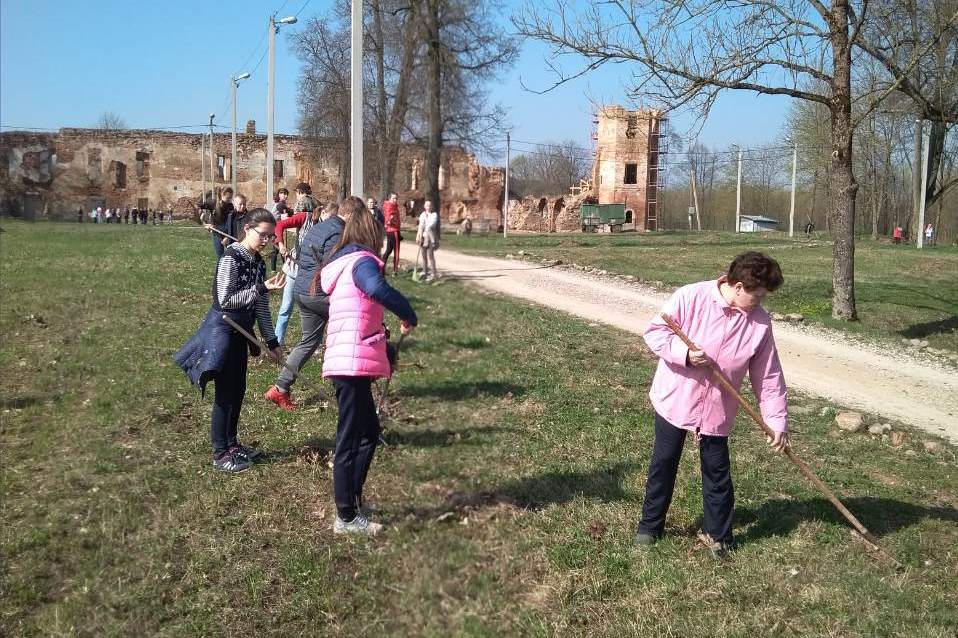 Ученики Гольшанской СШ вместе с учителями и техническими работниками трудились у стен замка Сапегов. В конце мая Гольшаны будут принимать многочисленных гостей на традиционном фестивале средневековой культуры, поэтому порядок на объекте должен быть идеальным. Часть детей занималась наведением порядка на пришкольной территории, которая, согласитесь, здесь достаточно большая.
