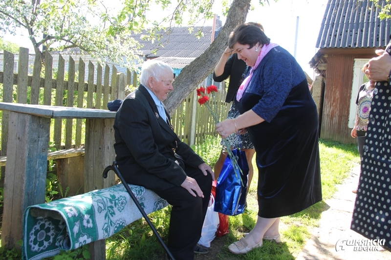 Напярэдадні вялікага свята Перамогі ў госці да ветэранаў завіталі старшыня райсавета ветэранаў Уладзімір Бельчанка, начальнік упраўлення па працы, занятасці і сацыяльнай абароне Галіна Яшына і старшыня раённага аб’яднання арганізацый прафсаюзаў Юрый Карповіч. Павіншаваць ветэранаў, якія шмат гадоў аддалі працы ў гаспадарках раёна, прыехалі прадстаўнікі раённага камітэта прафсаюза работнікаў аграпрамысловага комплекса – старшыня Раіса Турлай і галоўны бухгалтар Аксана Людкевіч.