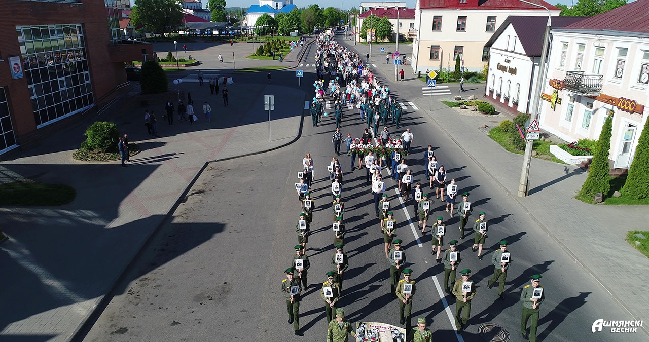 Утром 9 мая с Красноармейской улицы и квартала Строителей к центральному парку города прошли участники патриотической акции «И в памяти навеки имена» и представители трудовых коллективов с цветами, плакатами и фотографиями участников войны – людей, подаривших нам этот праздник.