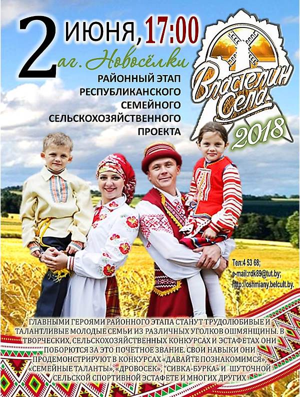 2 июня в агрогородке Новосёлки пройдет районный этап семейного проекта «Властелин села-2018»