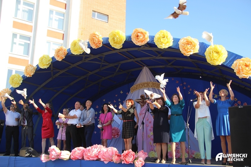 Старонка школьнага жыцця перагорнута. Наперадзе ў выпускнікоў новыя вышыні і здзяйсненні — яны адпраўляюцца ў самастойнае жыццё. Як сімвал-пачатак новага палёту бацькі выпускнікоў выпусцілі ў неба белых галубоў.