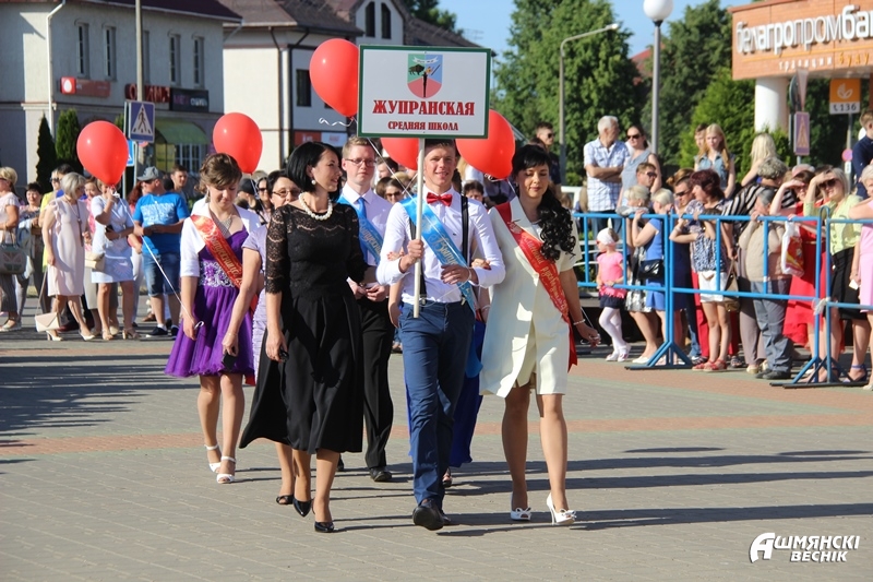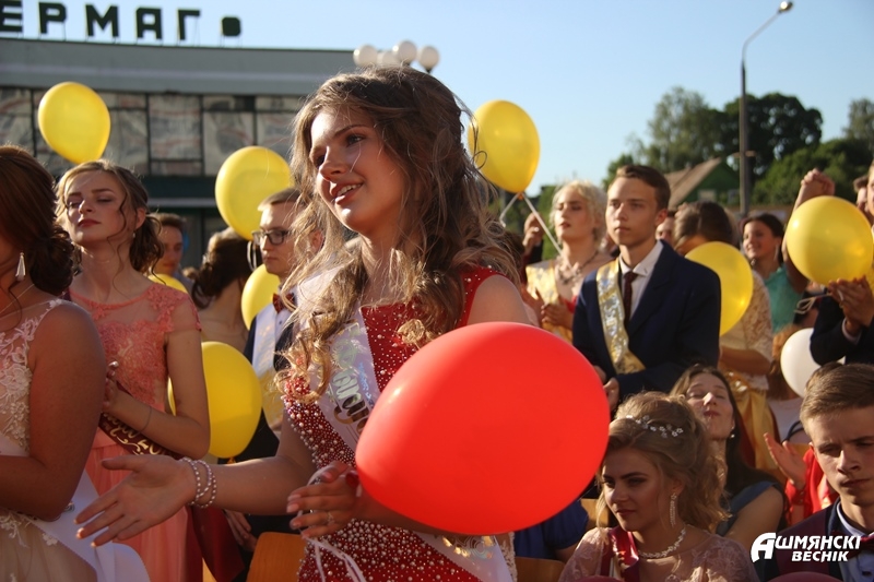 Усімі колерамі вясёлкі зайграла сёння цэнтральная плошча ў Ашмянах – тут сабраліся шчаслівыя і крыху разгубленыя выпускнікі школ раёна, іх бацькі, настаўнікі. Першы ў сваім жыцці выпускны баль адзначылі 170 юнакоў і дзяўчат.