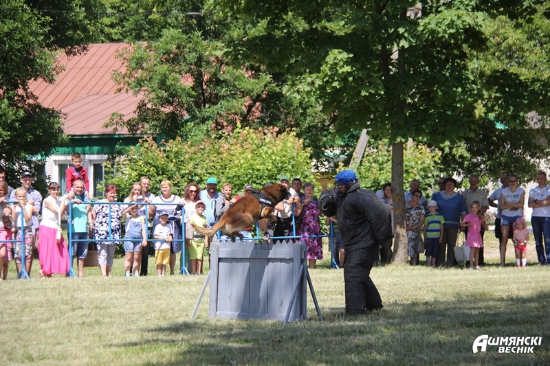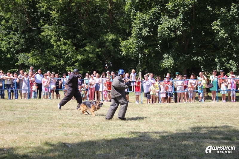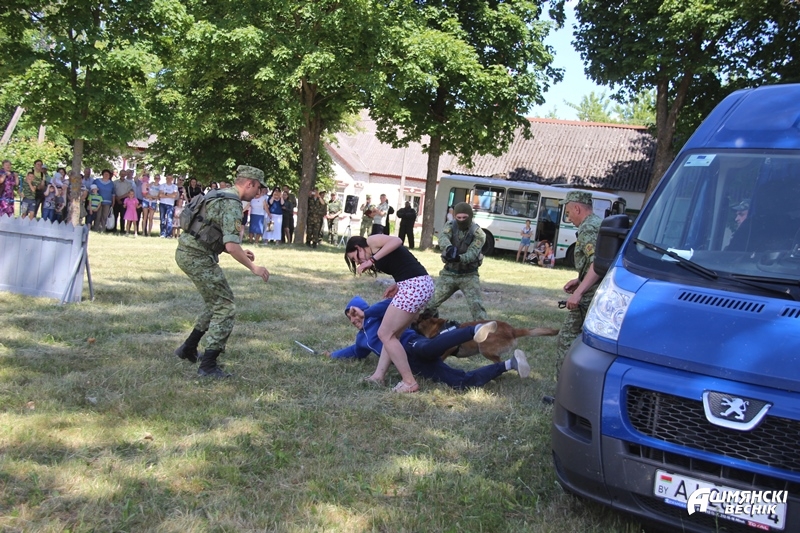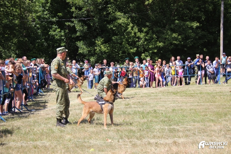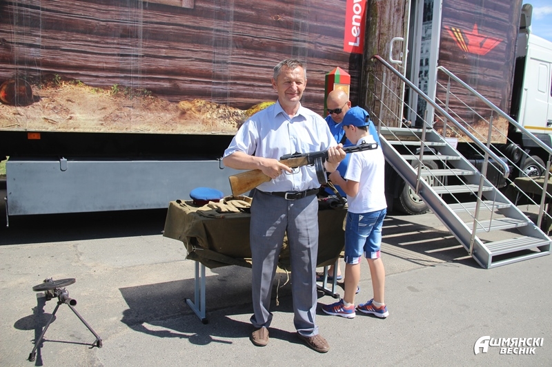 Перед зданием районного центра культуры развернула свою работу мобильная экспозиция музея Великой Отечественной войны. Интерес жителей города вызвала выставка образцов вооружения и снаряжения, используемого в оперативной пограничной службе. Кинологи продемонстрировали показательные выступления своих четвероногих помощников – собак.
