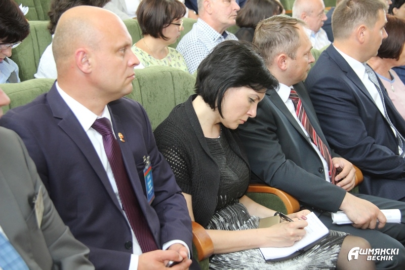 Заседание продолжилось в конференц-зале райисполкома. На формировании эффективной региональной политики, перспективных направлениях деятельности, способствующих социально-экономическому росту региона, остановился в своем выступлении председатель Ошмянского райисполкома Мирослав Саросек, отметив, что центром внимания всех ветвей власти является человек. Руководитель района охарактеризовал регион с разных позиций: через демографическую ситуацию на Ошмянщине, развитие промышленности и строительной сферы, проблемные вопросы в сельскохозяйственной отрасли. «Несмотря на ряд проблем в отрасли, та цель, которая стоит перед районом, а это увеличение собственных источников дохода к 2025 году до 84 процентов, будет достигнута,- заверил председатель райисполкома.- Жизнь не стоит на месте. Будем меняться, развиваться и мы, тем более, что наши кадры понимают задачи, которые перед ними стоят».