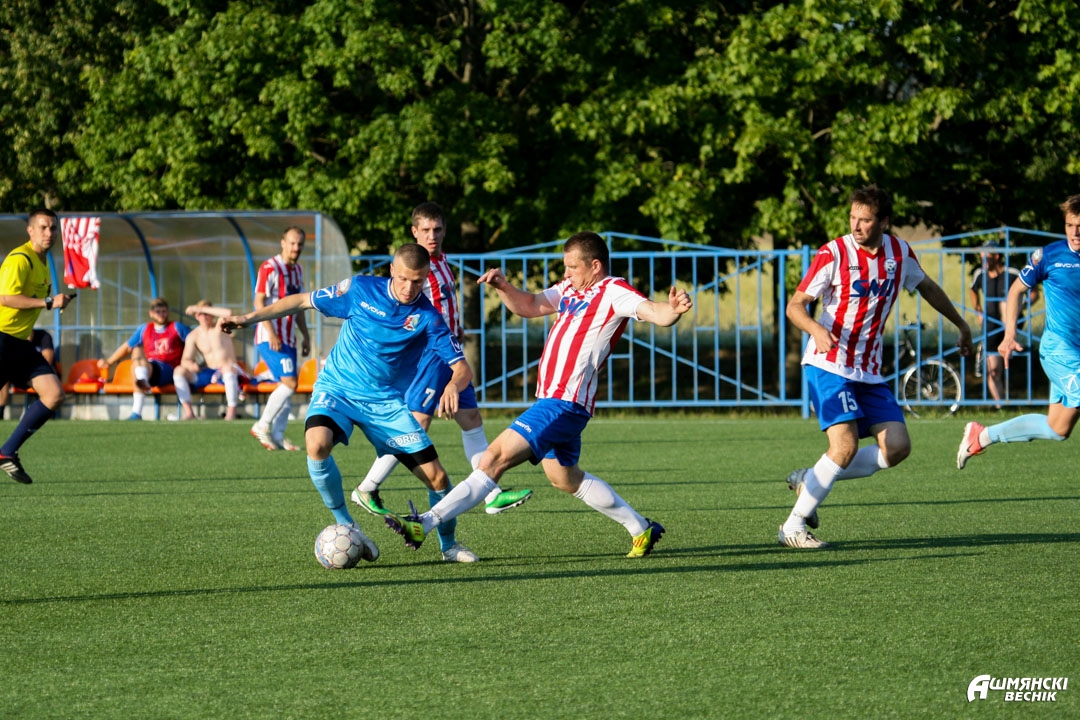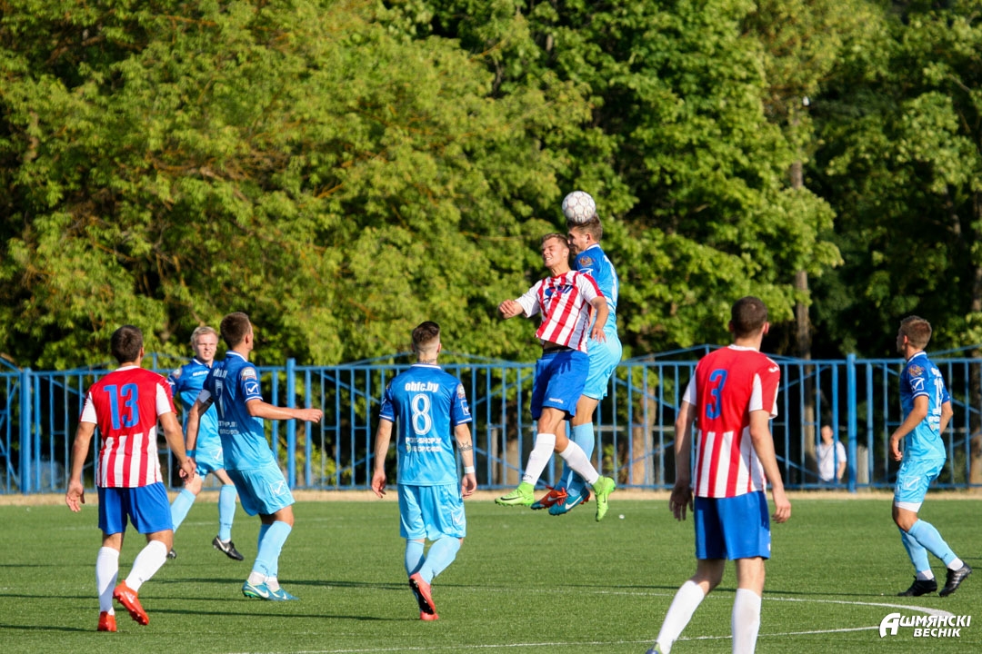 По настоящему футбольной выдалась неделя в Ошмянах. В среду наш город принимал матч Кубка Республики Беларусь по футболу («Ошмяны-БГУФК» уступил команде «Энергетик-БГУ»), днем, в субботу, прошел матч чемпионата Гродненской области («Ошмяны-2» победил «Слоним-Сити» 2:0), а вечером на стадионе физкультурно-оздоровительного встретились «Ошмяны-БГУФК» и «СМИавтотранс» (Смолевичский р-н) в рамках 9 тура чемпионата Республики Беларусь по футболу среди команд 2-й лиги.