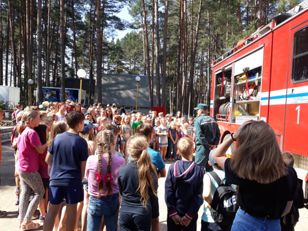 На первом этапе, когда погода стояла очень жаркая, ошмянские спасатели проводили для детей экскурсии в пожарной части, рассказывали о работе спасателя, напомнили детям и взрослым о важности соблюдения правил безопасности, демонстрировали спецоборудование и технику. Самым маленьким показывали мультфильмы на противопожарную тематику.