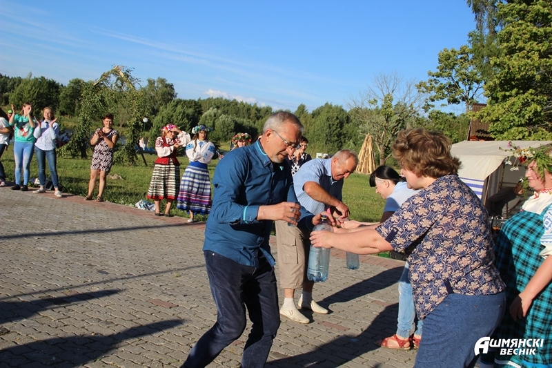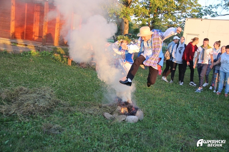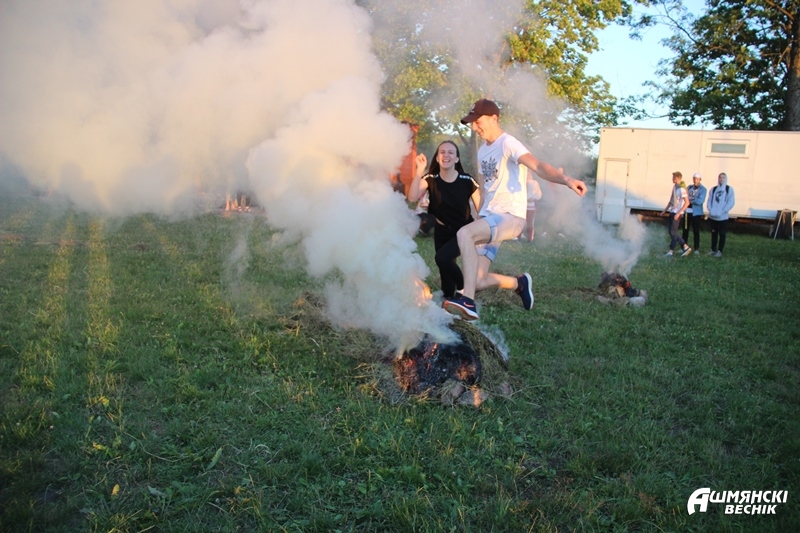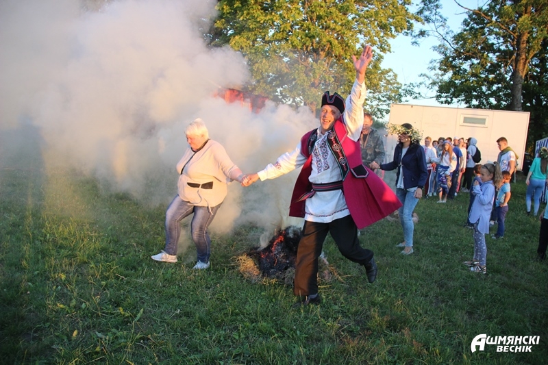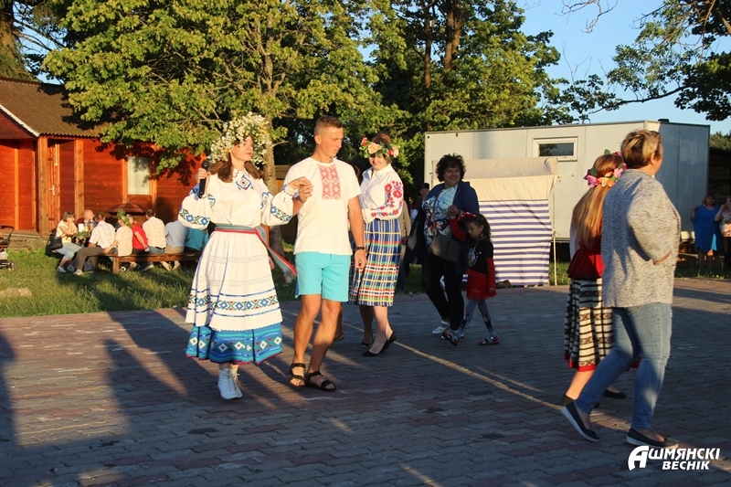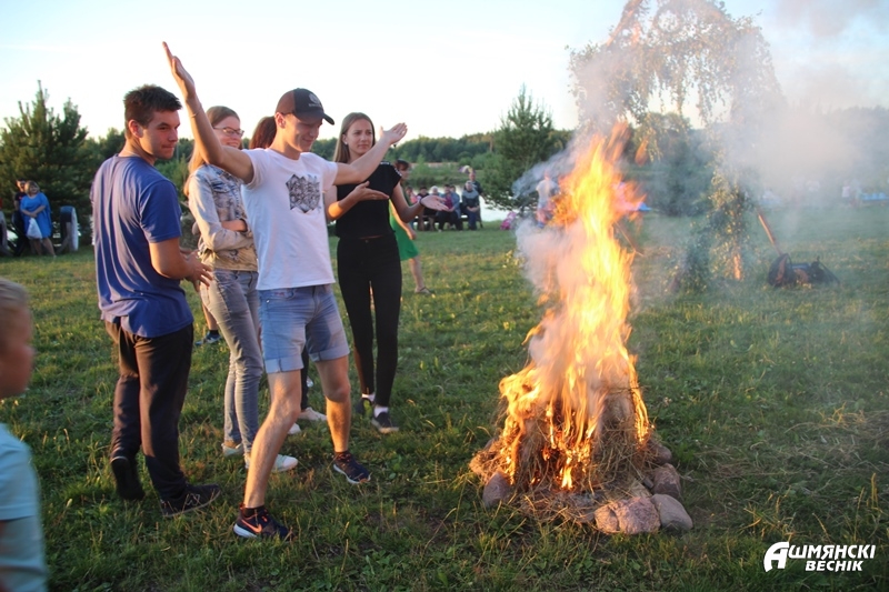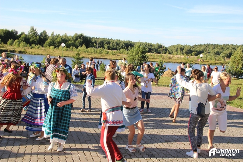 Место на берегу озера стало центром старинных обрядов и ритуалов. И венки запускали, и через костер прыгали, и цветок папоротника искали. А еще мастер-класс по белорусским бытовым танцам был. Да такой, что даже человек, не обладающий хореографическими способностями, научится: Марта Ланевская, заместитель директора районного центра культуры, ведущая мастер-класса, объясняла все доступно и просто.