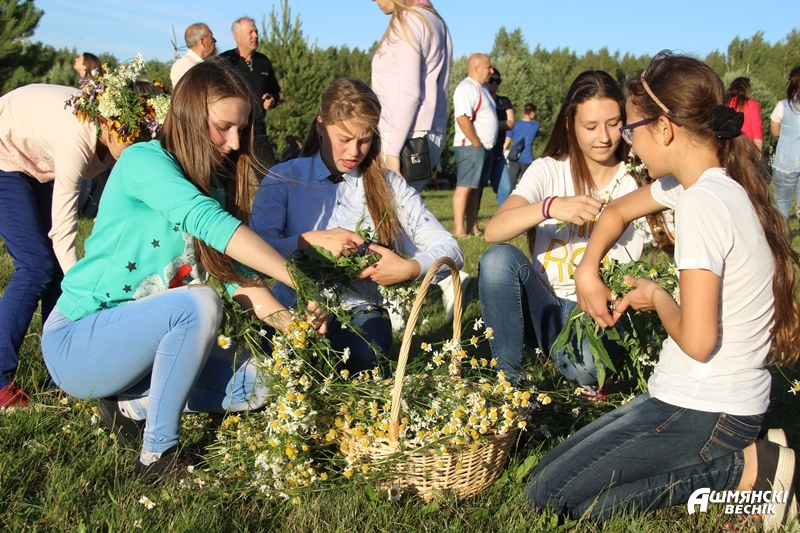 Купальская трава в эту ночь считается особенной, обладающей целительной силой. Когда-то знахари заготавливали лекарственные растения, а девушки плели веночки и гадали. Вторым и занялись ведущие, приглашая к участию публику. За плетением девушки рассказывали о легендах волшебного вечера. Говорили, что раньше каждая незамужняя девушка с особенным трепетом ждала Купалья, потому что могла погадать на своего суженого-ряженого. Запускали венки в воду: плывет ровно — значит все сложится счастливо, если же приставал к берегу, или вовсе тонул – не очень хороший знак. В какую сторону поплывет венок, в такой стороне и жених, ну а если вторая половина уже была, пускали два венка, на себя и на любимого: сойдутся на воде, или нет. Молодые девушки-гостьи праздника тоже испытали свою судьбу, бросив венок в воду, а что из этого вышло – они узнают позже.