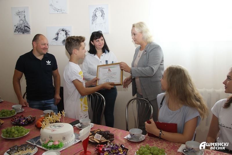Поздравить юного земляка пришла и заместитель председателя райисполкома Наталья Станкевич. Она вручила мальчику благодарность от лица общественной организации «Белая Русь» и денежное вознаграждение, пожелала Артему творческих успехов, новых побед и счастливого будущего.