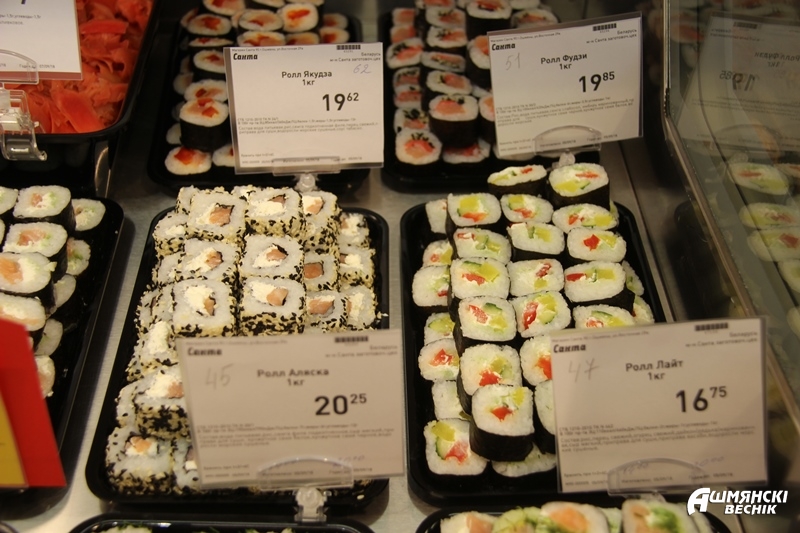 — Ассортимент впечатляет, — говорит Валентина Юревич, жительница города, производя уже оплату за товар на кассе. — Неплохо представлена рыбная продукция, бакалея, фрукты, хлебобулочные изделия и товары собственного производства, полюбившиеся суши и роллы. Цены приемлемы. Я довольна посещением этого магазина, а еще обрадовалась, что такой магазин планируется построить в моем микрорайоне по Борунской.