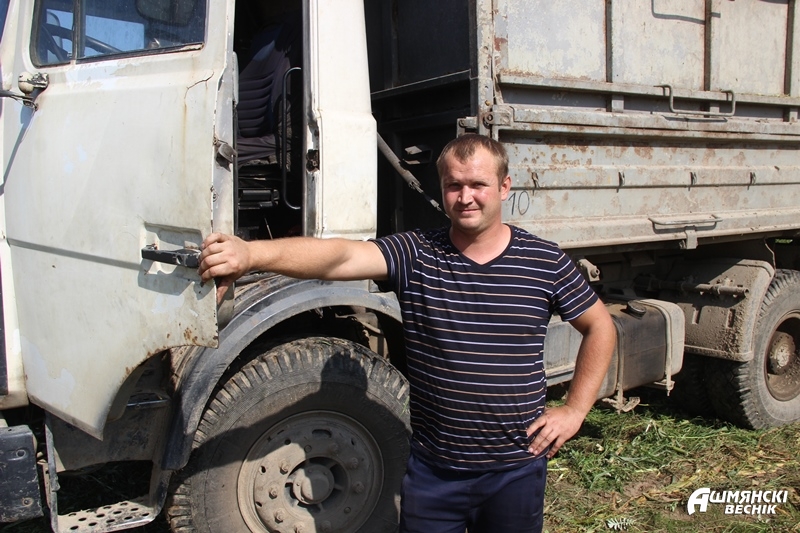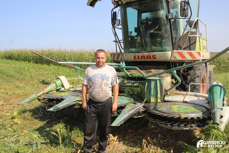 Возле фермы Новосяды на поле КСУП «Ошмянская Ясная поляна» она взметнулась на рекордные 3,7 метра. Кормоуборочного комбайна «Ягуар» за ней почти не видно. Издалека наблюдаю, как быстро заполняется кузов идущих рядом с ним тракторов и машин, синхронно сменяющих одни других. За рулем кормоуборочного комбайна не новичок, а работник со стажем — Виталий Быцко. Еще несколько дней назад он был занят на других сельскохозяйственных работах, а в период кормозаготовки традиционно работает на уборке кукурузы весь световой день. Водитель Константин Ющеев, который на МАЗе перевозил от комбайнов урожай зерновых, теперь ответственно трудится на транспортировке кукурузы. Следит, чтобы между рейсами практически не было постоев. Ну, разве что дождь иногда мешает аграриям. Для остальных механизаторов такой ритм давно стал привычным.