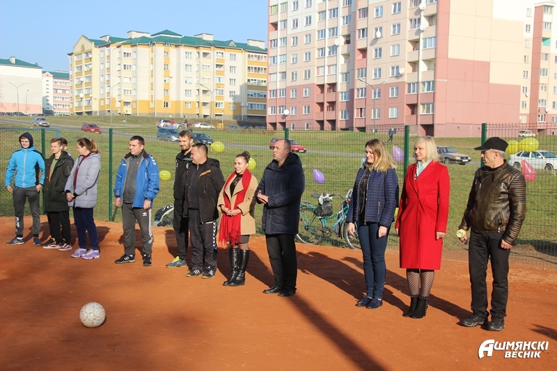 С открытием новой площадки местных жителей пришли поздравить представители отдела спорта и туризма Ошмянского райисполкома, тренеры и учителя физической культуры школ города. В этот же день на современной площадке прошли первые матчи кубка города по дворовому мини-футболу. В нем приняли участие лучшие футболисты школ города. Традиционно судьей соревнований выступил Чеслав Батуревич.