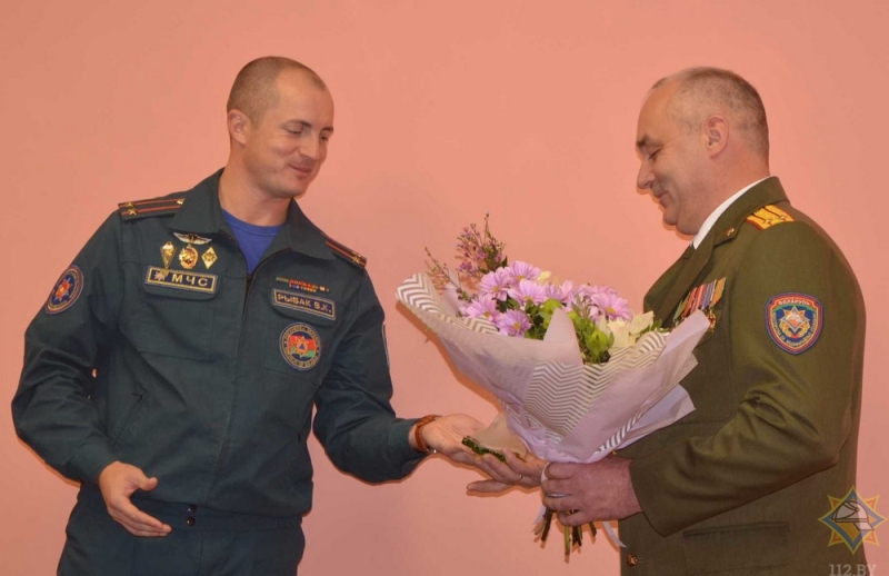 Для того, чтобы поблагодарить уважаемого огнеборца, весь средний и старший начальствующий состав отдела собрался в актовом зале. В его адрес прозвучало множество слов благодарности и пожеланий бодрости духа и крепкого здоровья. Начальник отдела Рыбак Виталий Константинович поблагодарил виновника торжества за службу и вручил ему памятные сувениры и цветы.