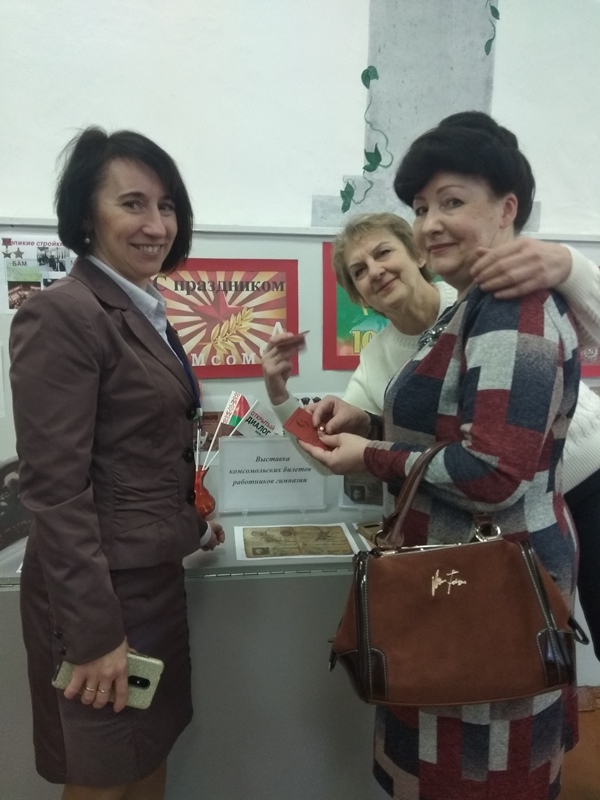 В рамках мероприятия в актовом зале гимназии была организована выставка «Комсомольская юность моя». На ней были представлены устав, комсомольские билеты и значки работников гимназии, фотографии и вырезки из газет.